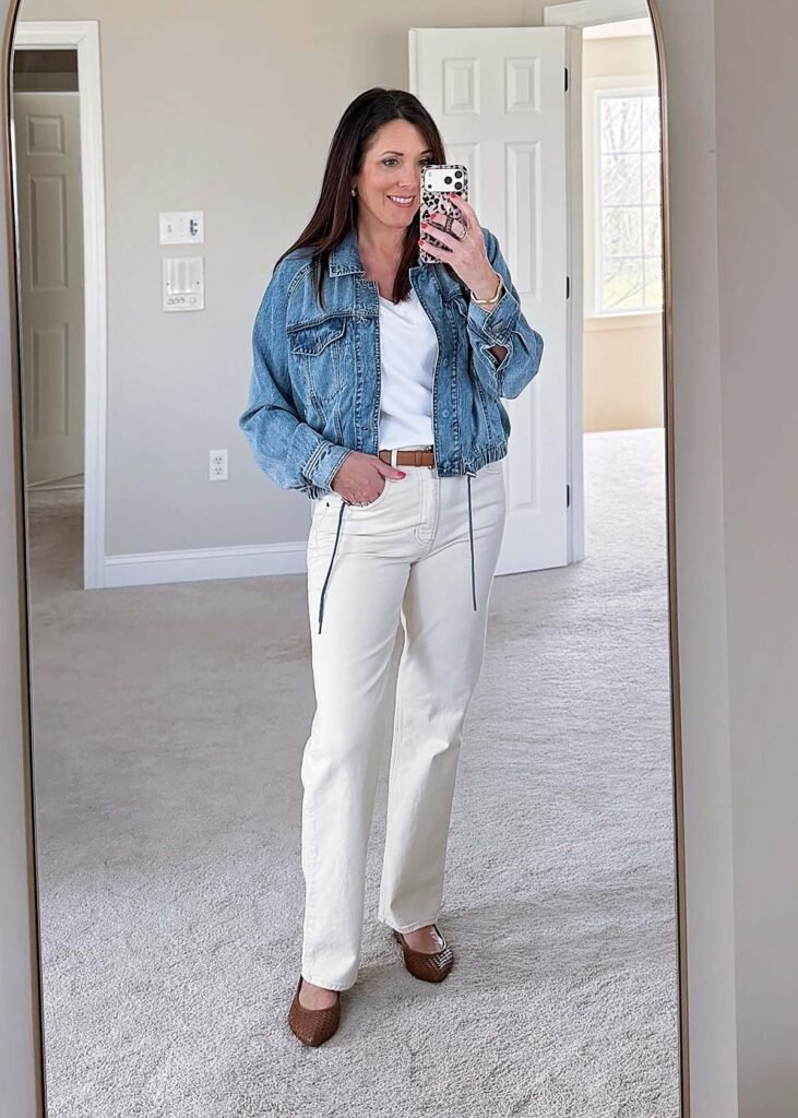 In addition to linen options, lighter denim shades and neutral-colored jeans can also work well in spring outfits. Soft tones such as ecru or cream provide a seasonal alternative to darker denim and pair easily with simple tops.